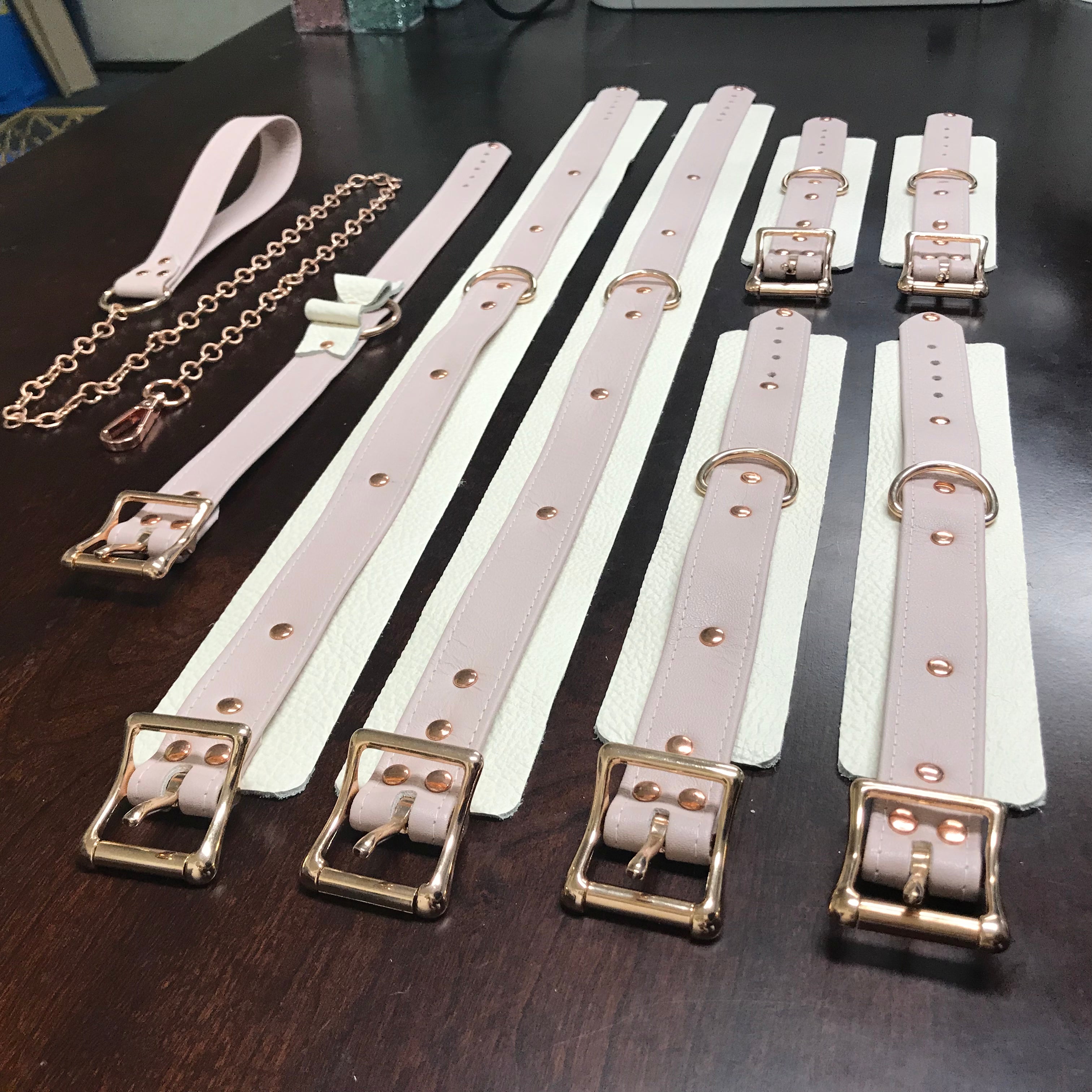 We can make everything from a custom shaped acrylic collar tag to a full set of completely custom bondage gear.
