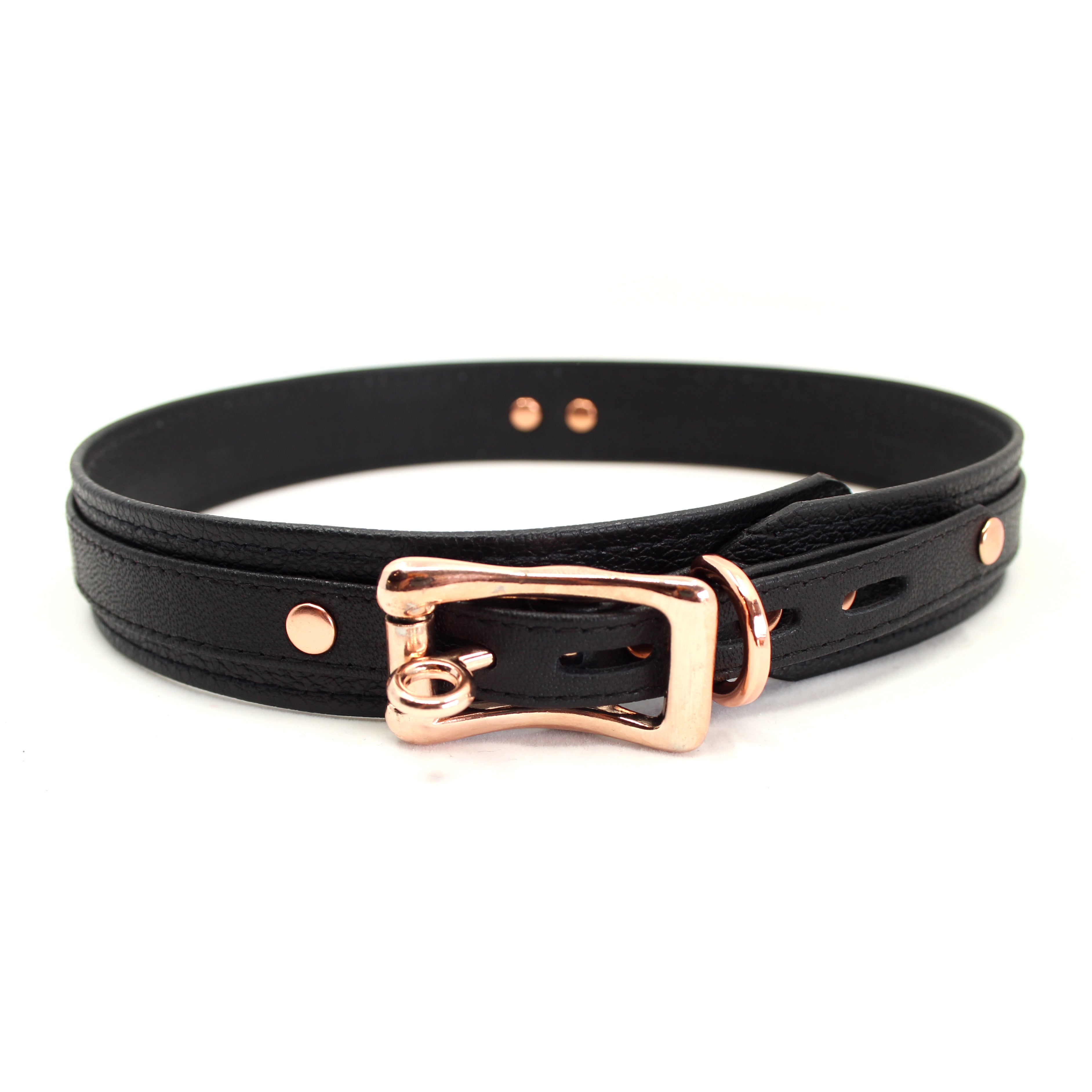 This 1" wide layered leather collar is the ideal play collar. While it's width and construction makes it heavy, sturdy, and ready for play, it's modern, minimalist style makes it perfectly genderless.
