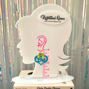 We couldn't possibly cater to all of your personal aesthetics - so we're offering these 'design your own' laser-cut acrylic heart "Brat" earrings. They're are topped with tiny satin bows and finished with steel hardware.