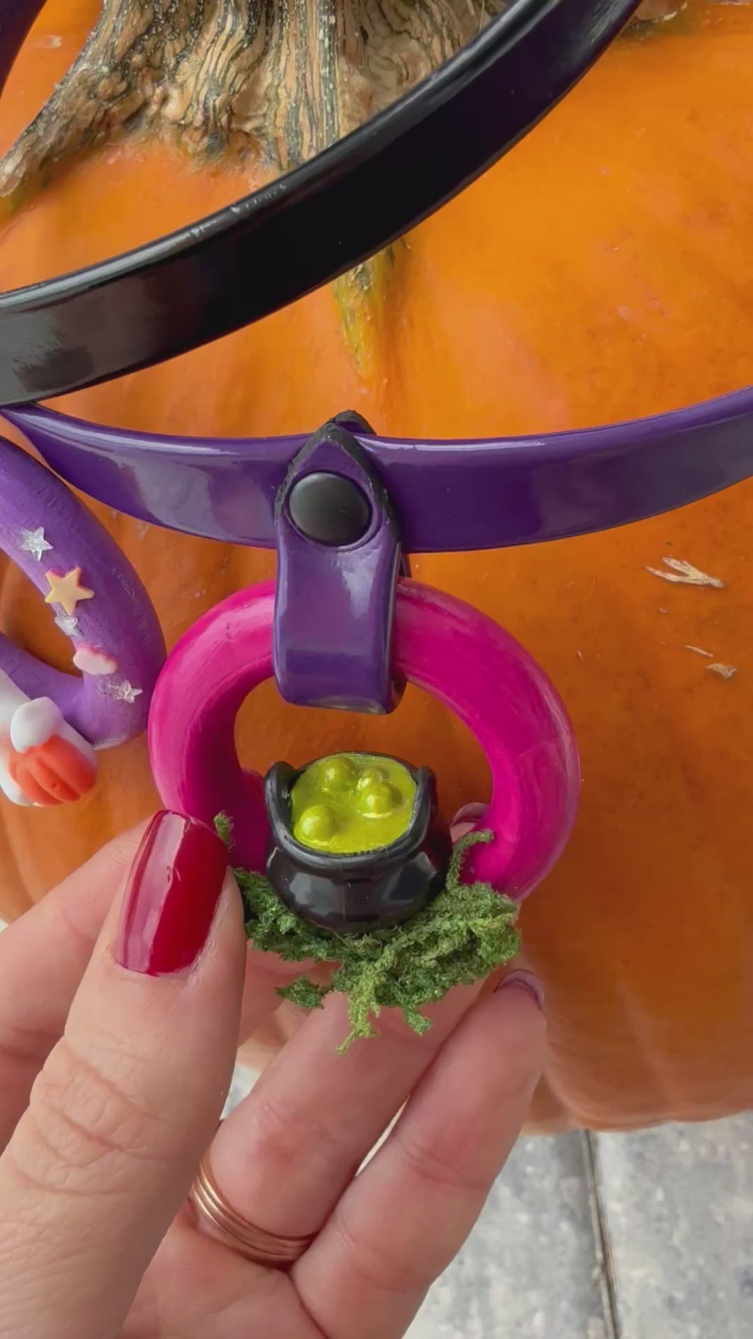 Something glittering and green is bubbling in this miniature cauldron, and only the owner of this collar can decide exactly what potion is brewing. This 1.5” wooden ring of O is adorned with a tiny witch’s cauldron atop a bed of soft woodsy moss. This collar is a wearable work of art, and as such is not suitable for leashes or tugging.